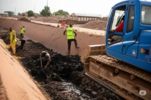 Une canalisation bouchée près de la mosquée entraîne de l’eau stagnante et des moustiques ; plainte transmise à la mairie.